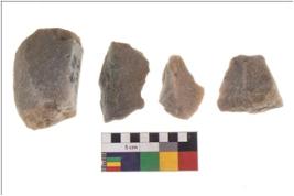 | Description / विवरण | There are n 4 flakes tool; there are multidirectional irregular scar pattern on them; made of short flakes and all four have tapering edges. |