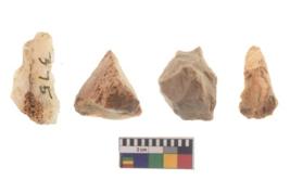 | Description / विवरण | There are n 4 of utilized worked cores and show irregular scar pattern on both dorsal and ventral side. Three are tapering at one end. |