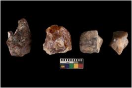 | Description / विवरण | There are n 4 utilized flake cores. There are multi directional irregular scar pattern on them. Two have blunted edges and two have round edges. |