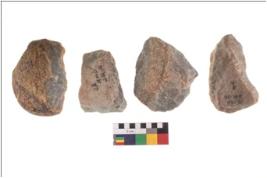| Description / विवरण | There are n 4 flakes tool; there are multidirectional irregular scar pattern on them; made of short flakes and all four have tapering edges. |