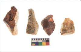 | Description / विवरण | Specimen of fluted cores having several broad fluted marks indicating the detached blades from it. |