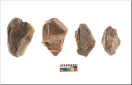 | Description / विवरण | There are n 4 flake cores. All of them are fully fluted flake cores without any trace of crested ridge flakes. |