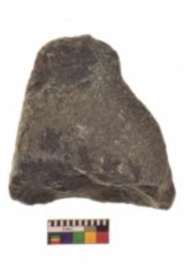 | Description / विवरण | Specimen of handaxe with one elongated side for holding purpose. It is blackish in colour and coarse in texture. |