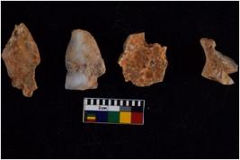 | Description / विवरण | There are n 4 flakes tool; there are large flakes with sides trimmed, Marks of secondary flaking are present on the both the faces. The dorsal is relatively flat. One is pointed functional top |
