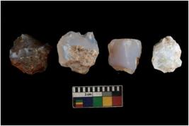 | Description / विवरण | There are n 4 utilized flake cores. There are multi directional irregular scar pattern on them. Two have flat base and two have blunted edges. |
