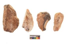 | Description / विवरण | There are n 4 of utilized worked cores and show irregular scar pattern. They are tapering at one end. |