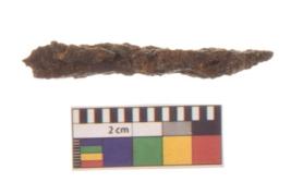 | Description / विवरण | Specimen of a long nail with sharp pointed functional bottom end and round slightly projected top. |