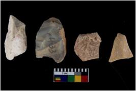 | Description / विवरण | There are n 4 of utilized worked cores and show irregular scar pattern on both dorsal and ventral side. Three are tapering at one end. |