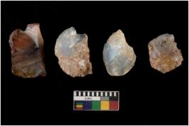 | Description / विवरण | There are n 4 utilized flake cores. There are multi directional irregular scar pattern on them. One has sharp edge and three have blunted edges. |