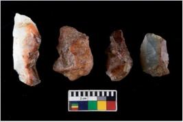 | Description / विवरण | There are n -4 of utilized worked cores. There are multidirectional irregular scar pattern and have sharp edges. One has a broken tip. |