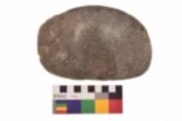 | Description / विवरण | Specimen of a roughly oval shaped grinding stone. It is brownish in colour and smooth in texture. It has flat base. |