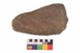 | Description / विवरण | Specimen of an handaxe with one elongated side for holding purpose. It is dark brown in colour and coarse in texture. |