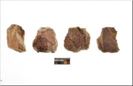 | Description / विवरण | Specimen of fluted cores having several broad fluted marks indicating the detached blades from it. |