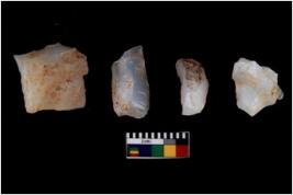 | Description / विवरण | There are n 4 of utilized worked cores. They show multidirectional irregular scar pattern and have sharp edges. Two have a broken tip. |