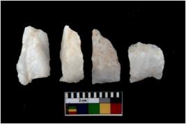 | Description / विवरण | There are n 4 utilized flake cores. Three are tapering at one end and one has blunted edge. |