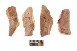 | Description / विवरण | There are n 4 of utilized worked cores and show irregular scar pattern on both dorsal and ventral side. They are tapering at one end. |