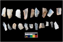 | Description / विवरण | There are n-20 of microliths, all of them are chalcedony. Some of them are partially broken. They show variation in colour, size and shape. Some of them are blunted back blades, points, triangles, trapezes, crescent and truncated blades. |