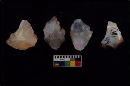 | Description / विवरण | There are n 4 of utilized worked cores. They show multidirectional irregular scar pattern and have sharp edges. One has a flat base. |