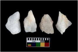 | Description / विवरण | There are n 4 utilized flake cores. Two have sharp edges and two have blunted edges. |