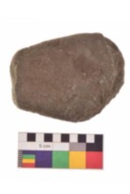 | Description / विवरण | Specimen of an uneven shaped smasher with smooth texture. It is brownish in colour and has flat base. |