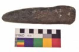 | Description / विवरण | Specimen of an handaxe with one elongated side for holding purpose. It is blackish in colour and smooth in texture. |