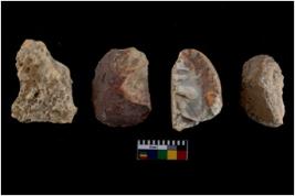 | Description / विवरण | There are n 4 of utilized worked cores and show irregular scar pattern on both dorsal and ventral side. One has a flat base. |