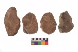 | Description / विवरण | There are n 4 of utilized worked cores and show irregular scar pattern on both dorsal and ventral side. Three have a broken tip while one is tapering at one end. |
