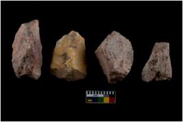 | Description / विवरण | There are n 4 of utilized worked cores and show irregular scar pattern on both dorsal and ventral side. Two have a broken tip. |