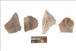 | Description / विवरण | There are n 4 flakes tool; there are triangular flake tool having flat thick body and deep long flake scar is seen on the upper side. It has flat thick bottom and pointed functional top. |