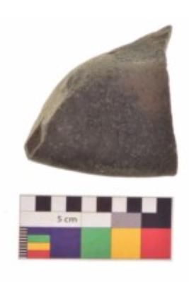 | Description / विवरण | Specimen of an uneven shaped saddle quern. It is brownish in colour and smooth in texture. |