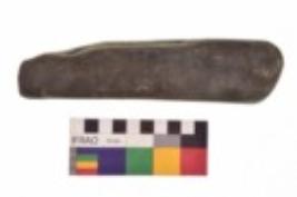 | Description / विवरण | Specimen of an handaxe with one elongated side for holding purpose. It is blackish in colour and smooth in texture. |