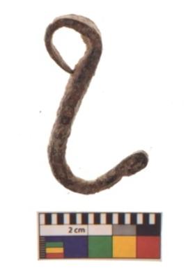 | Description / विवरण | Fragment of a hook with the curved end tapering into a point. It is rectangular cross section and rusted |