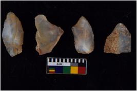 | Description / विवरण | There are n 4 flakes tool; there are flakes tool with prominent flaking marks. It made up of a large flakes with sides trimmed. |