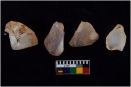 | Description / विवरण | There are n 4 flakes tool; there are multidirectional irregular scar pattern on them; made of short flakes and all four have tapering edges. |