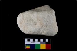 | Description / विवरण | Specimen of a spherical shaped hammer stone with battered surface. |