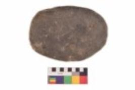 | Description / विवरण | Specimen of a roughly oval shaped grinding stone. It is brownish in colour and smooth in texture. It has flat base. |