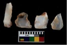 | Description / विवरण | There are n 4 utilized flake cores. There are multi directional irregular scar pattern on them. One is tapering at one end and three have blunted edges. |