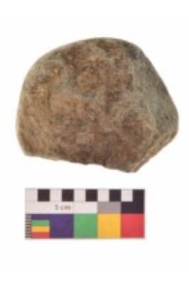 | Description / विवरण | Specimen of an uneven shaped hammerstone. It is brownish in colour and smooth in texture. It has flat base. |
