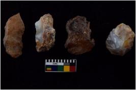 | Description / विवरण | There are n 4 flakes tool; there are flakes tool with prominent flaking marks. It made up of a large flakes with sides trimmed. |