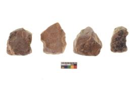 | Description / विवरण | There are n 4 of utilized worked cores and show irregular scar pattern on both dorsal and ventral side. They have a flat base. |