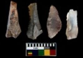 | Description / विवरण | There are n 4 utilized flake cores. Out of them one is made up of Chert and three are made up of Chalcedony. There are multi directional irregular scar pattern on them. Three are tapering at one end and one has sharp edge. |