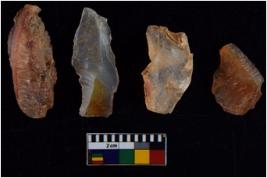 | Description / विवरण | There are n 4 flakes tool; there are flakes tool with prominent flaking marks. It made up of a large flakes with sides trimmed. It is rectangular in shaped |