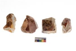 | Description / विवरण | There are n 4 of utilized worked cores and show irregular scar pattern. Two have flat base. |