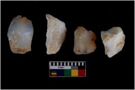 | Description / विवरण | Specimen of flake tools with prominent flaking marks. They are made up of a short flakes with sides trimmed. |
