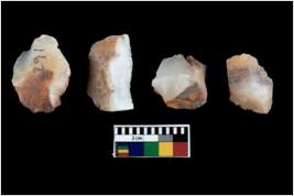 | Description / विवरण | Specimen of fluted cores having several broad fluted marks indicating the detached blades from it. |