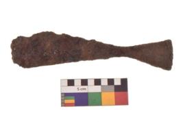 | Description / विवरण | Fragment of Agriculture tool. It has lenticular shape with rectangular cross section and pointed butt. It is under side flat and blunt edge. |