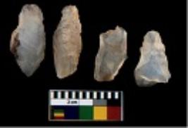 | Description / विवरण | There are n 4 utilized flake cores. There are multi directional irregular scar pattern on them. All of them are tapering at one end. |