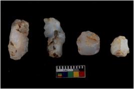 | Description / विवरण | Specimen of flake tools with prominent flaking marks. They are made up of a short flakes with sides trimmed. |