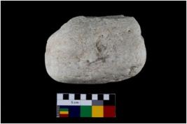 | Description / विवरण | Specimen of an oval shaped rubber stone with rectangular section and concave end. |