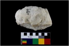 | Description / विवरण | Specimen of a spherical shaped hammer stone with battered surface. |